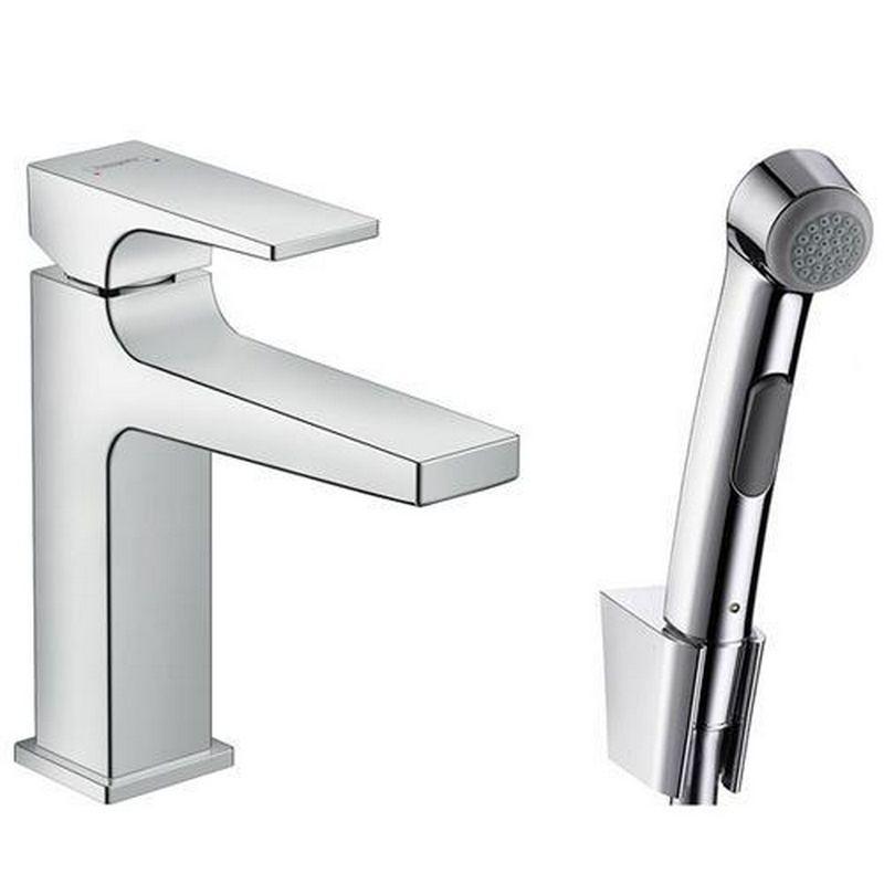 Смеситель Hansgrohe Metropol 32522000 для раковины с гигиеническим душем, с донным клапаном Push-Open| 4x18x16
