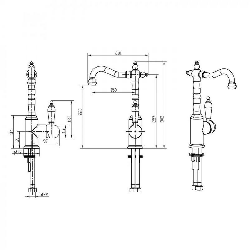 Смеситель Boheme Tradizionale Oro 282 для раковины| 12x30x21