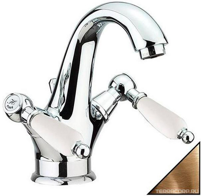 Смеситель для раковины, с д/к, (цв.бронза, ручка цв.белый), Elite ZZ