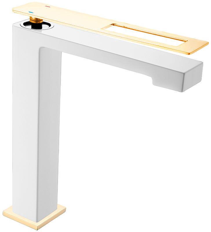 Смеситель для раковины высокий LM6409WG, 5x15x19 см, донный лапан цв золото, см-ль цв белый+золото, ZZ