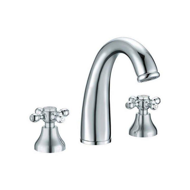 Смеситель для раковины на 2 отверстия, настенный монтаж, внутр. часть в комплекте, хром