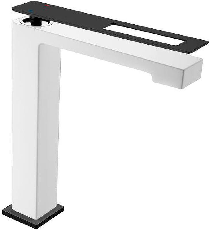 Смеситель для раковины, высокий, без донного клапана, цв.черый матовый