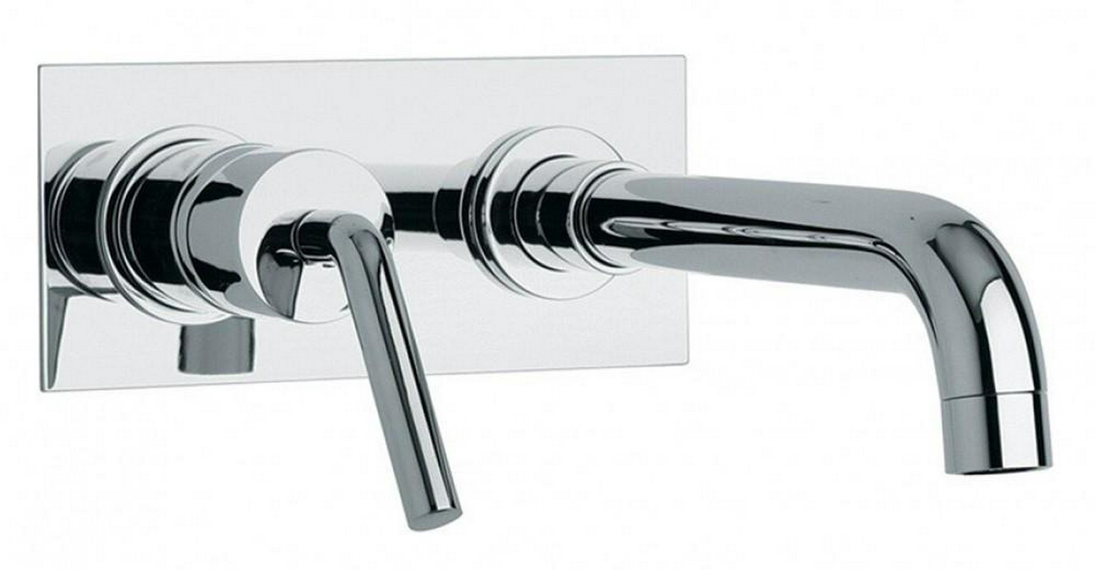 Смеситель для раковины на 2 отверстия, настенный монтаж, внутр. часть в комплекте, хром