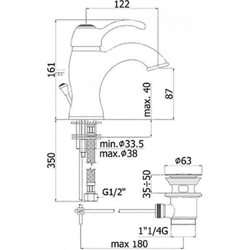 Смеситель Paffoni Giorgia GI075GF для раковины| 6x16x12