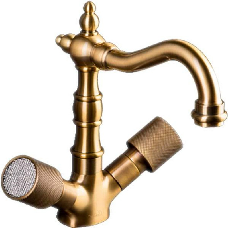 Смеситель для раковины MUSE вентильный с донным клапаном, потертая бронза ZZ