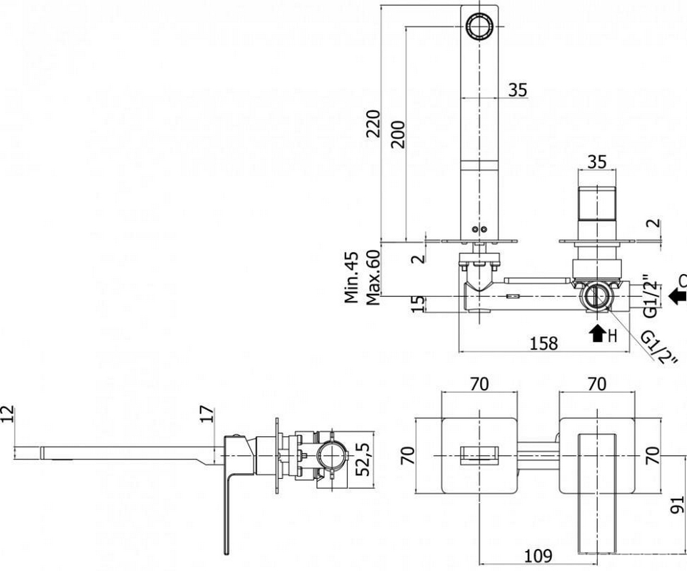 Смеситель Paffoni Elle EL105NO70 С ВНУТРЕННЕЙ ЧАСТЬЮ, для раковины| 17x7x22