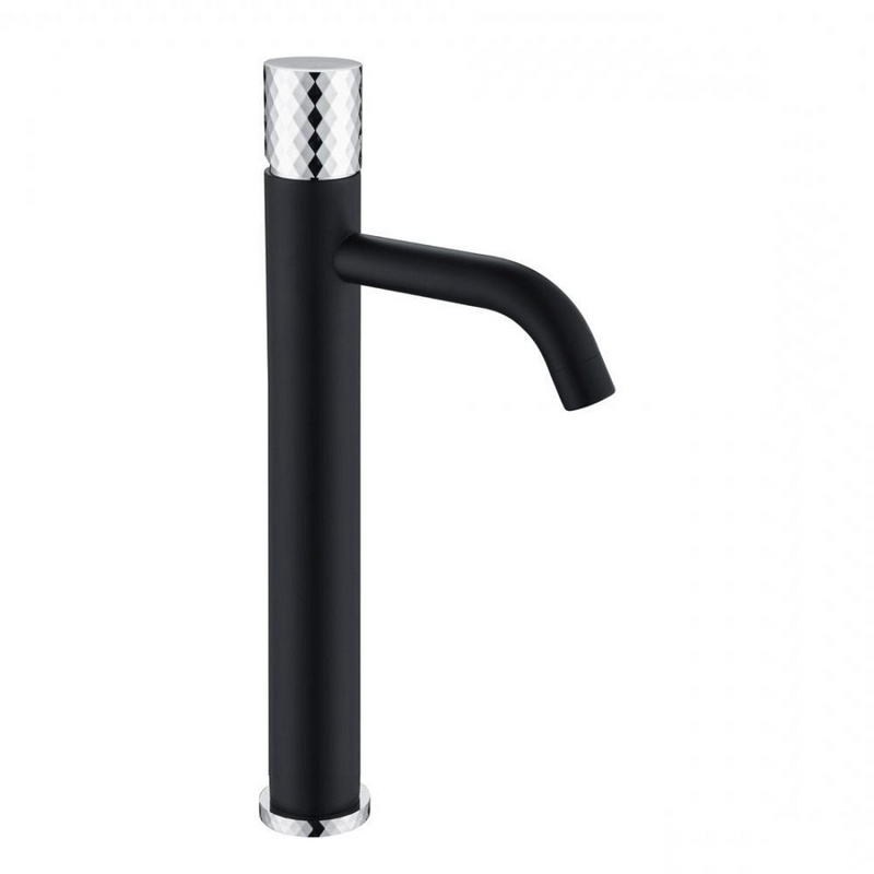 Смеситель для раковины, высокий, без донного клапана, цв.черый матовый