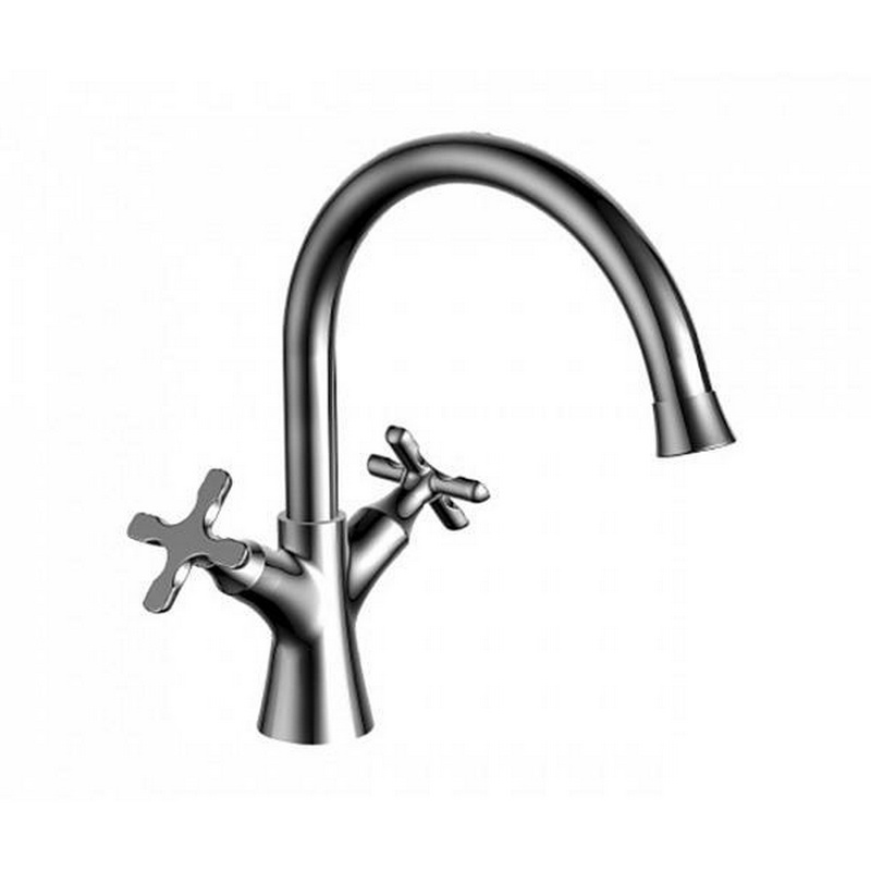 Смеситель для раковины, высокий, без донного клапана, цв.хром