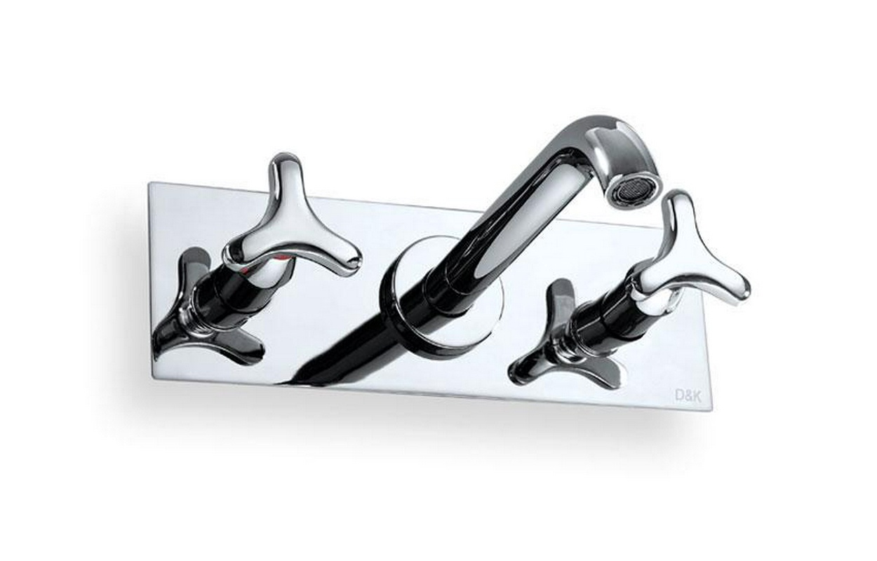 Смеситель для раковины на 2 отверстия, настенный монтаж, внутр. часть в комплекте, хром