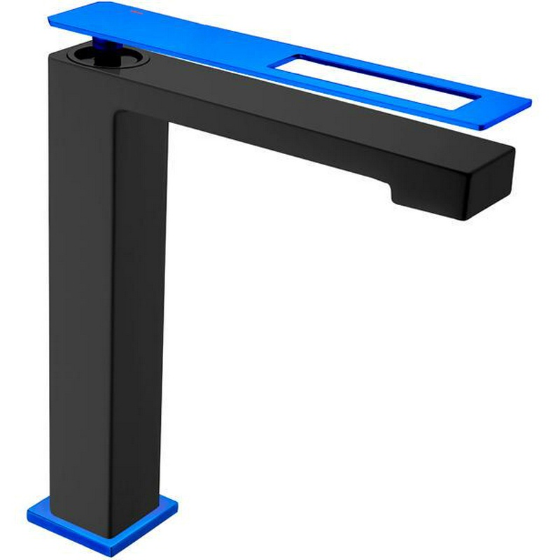 Смеситель для раковины, высокий, донный клапан click clack в комплекте, цв.черный матовый