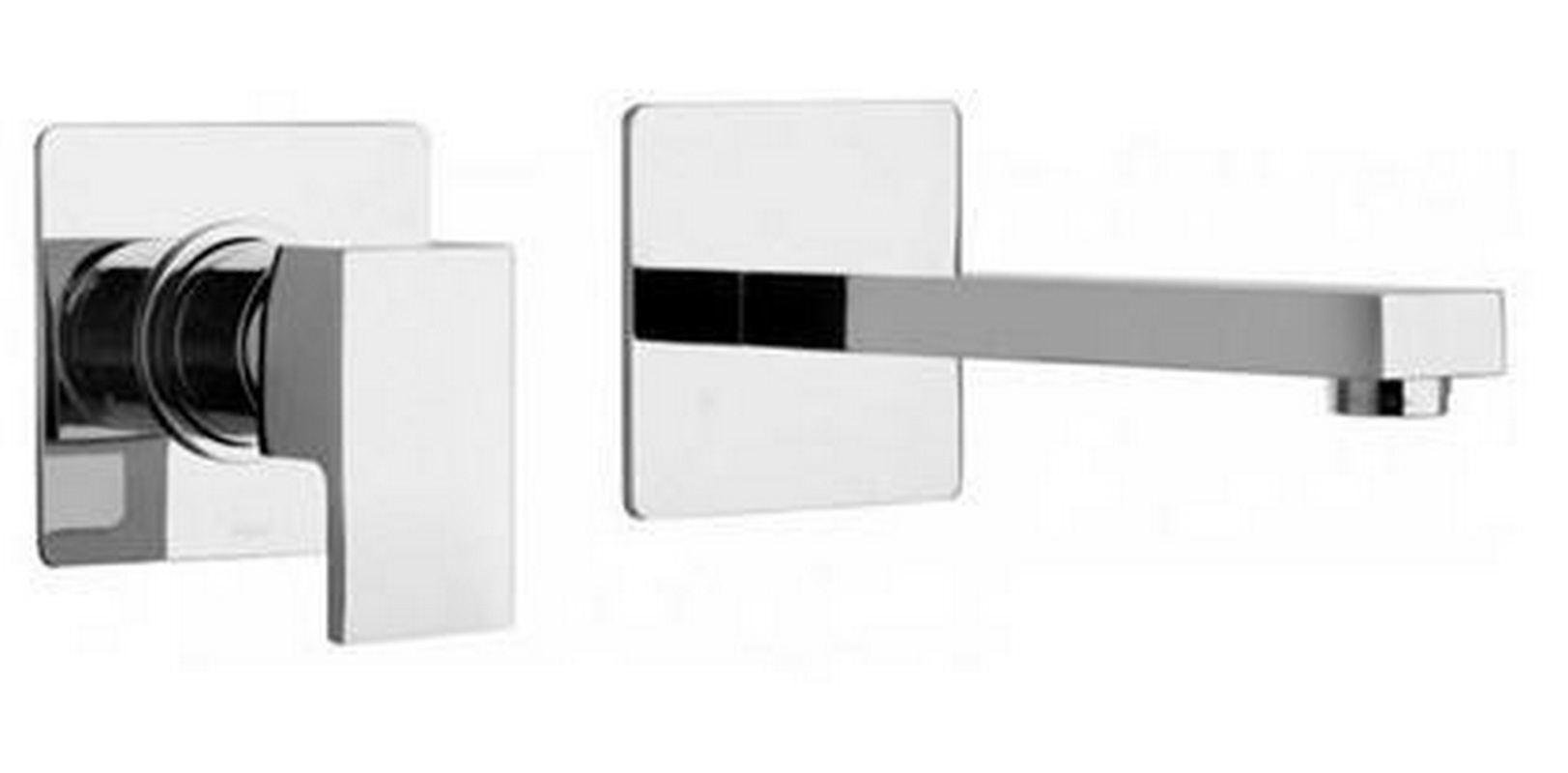 Смеситель для раковины на 2 отверстия, настенный монтаж, внутр. часть в комплекте, хром