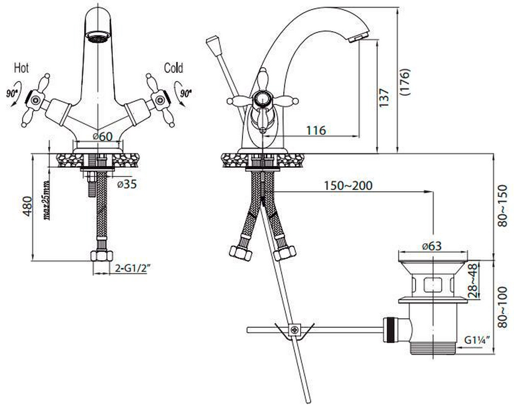 Смеситель для раковины, с д/к, (цв.хром), Nostalgia ZZ