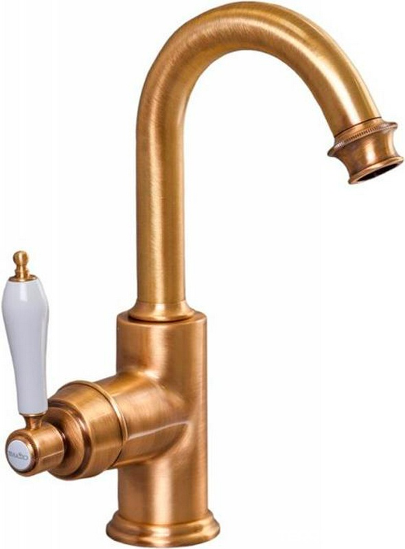 Смеситель для раковины, высокий с поворотным изливом, с д/к, (цв.бронза, ручка цв.белый), Elite ZZ