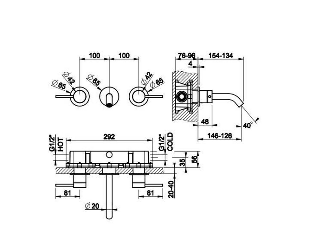 Смеситель для раковины, встраив. в стену, излив 147-127мм, (внешние части, БЕЗ встаив.части арт.45089 031), (цв.Warm Bronze Br. PVD), Flessa ZZ