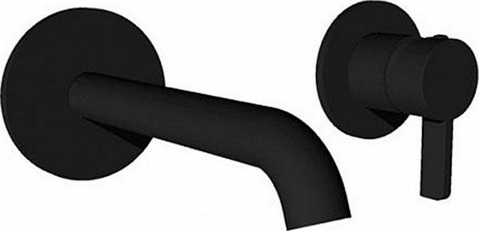 Смеситель для раковины, встраиваемый в стену, излив 195мм, встраив.часть в компл., (цв.черный матовый), Priority