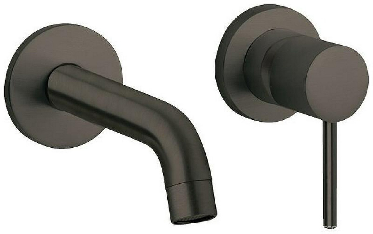 Смеситель для раковины, встраиваемый в стену, излив 195мм, встраив.часть в компл., (цв.графит браш.), Priority