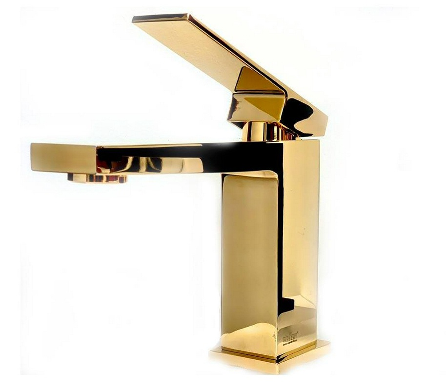 Смеситель для раковины, однорычажный, без донного клапана, золото
