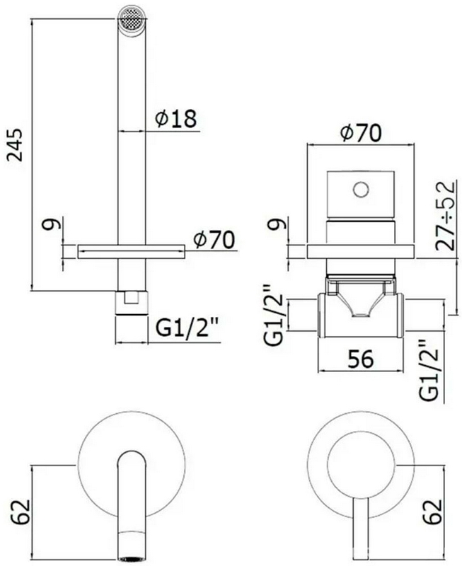 Смеситель для раковины, настенный, излив 245мм, встраиваемая часть в компл., без д/к, (цв.Steel looking), Light ZZ