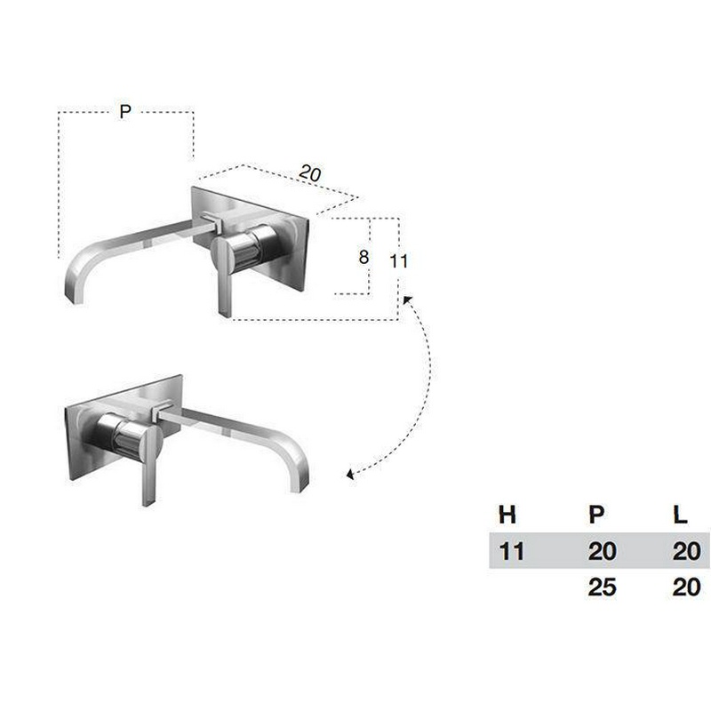 Смеситель для раковины, встраиваемый в стену, излив 250мм, (внешняя часть, без встраиваемой), (цв.хром), Antonio Lupi Bikappa ZZ
