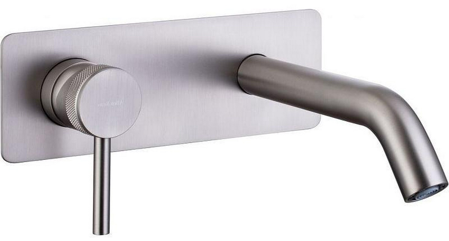Смеситель для раковины, встраиваемый в стену, 1 ручк. гориз., излив 196мм, (цв. тертая сталь), 5mm ZZ