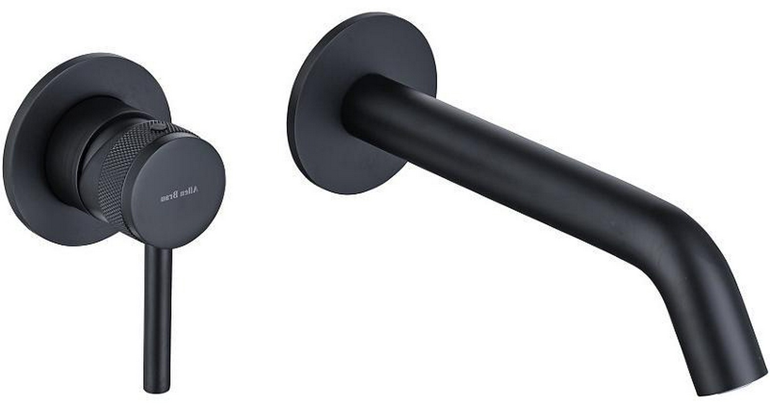 Смеситель для раковины, встраиваемый в стену, излив 195мм, встраив.часть в компл., (цв.черный матовый), Priority