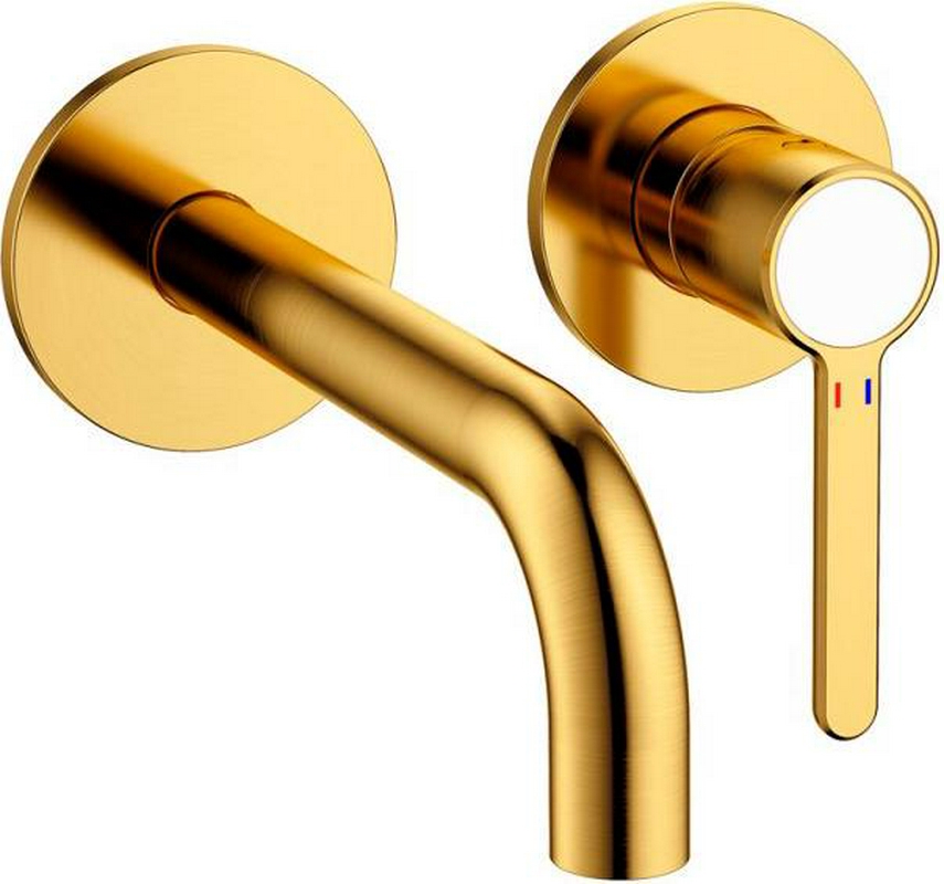 Смеситель для раковины, встраеваемый в стену, излив 18,5см, (цв.брашированное золото), Eco ZZ