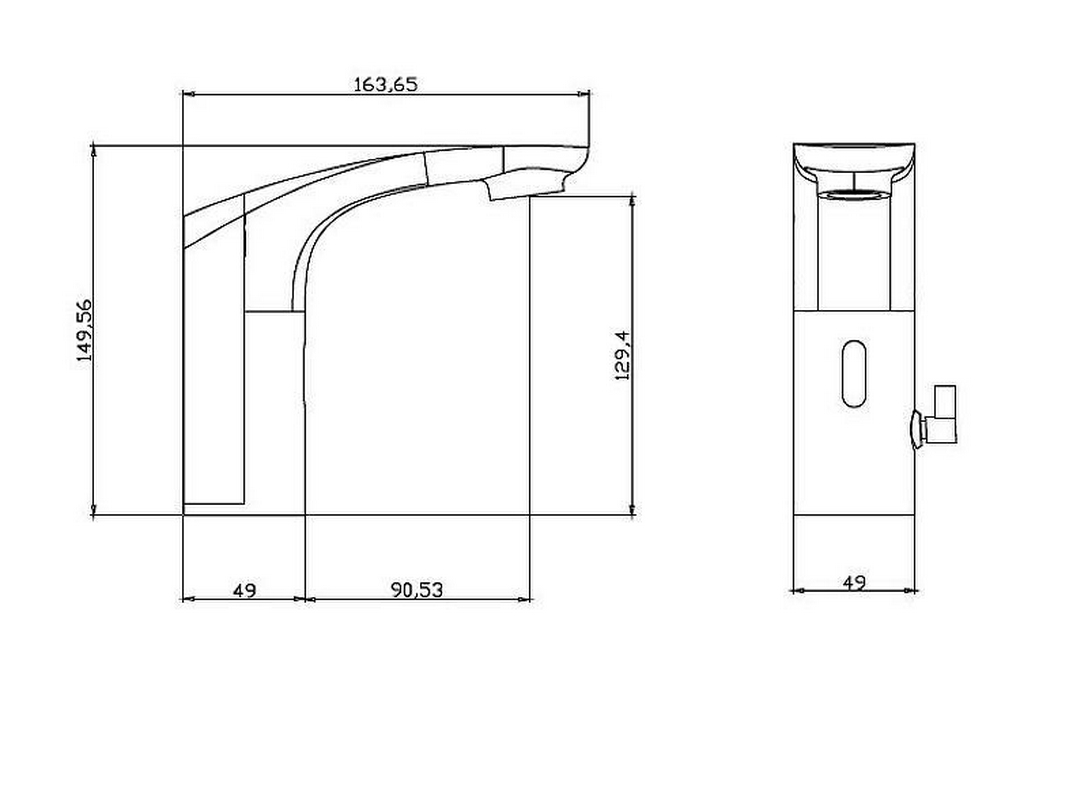 Смеситель для раковины электронный, без д/к, работа фотоэлемента от сети 220V и от 4-х пальчиковых батареек, (цв.хром), Acqua ZZ