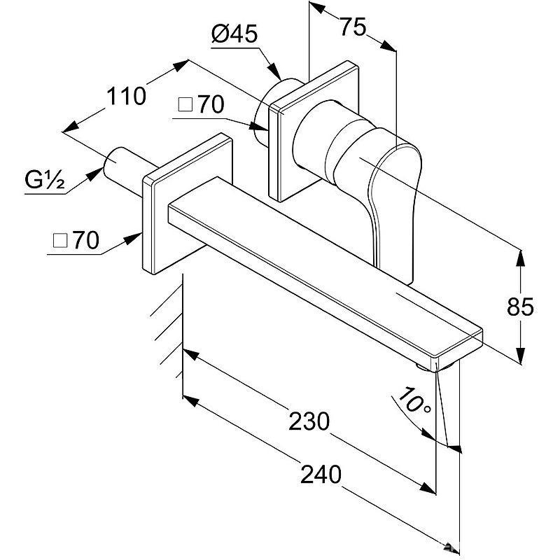 Смеситель для раковины Kludi Zenta SL 482450565, встраиваемый в стену, два отверстия, БЕЗ внутренней части (38242 или 38243), хром ZZ