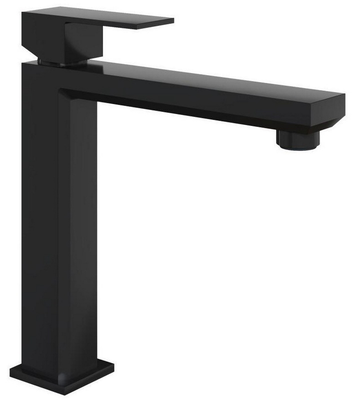 Смеситель для раковины, высокий, без донного клапана, цв.черый матовый