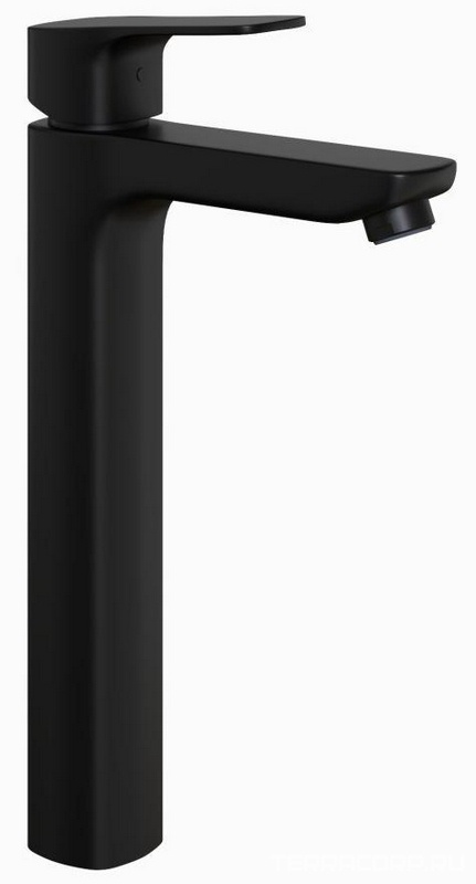 Смеситель для раковины, высокий, без донного клапана, цв.черый матовый