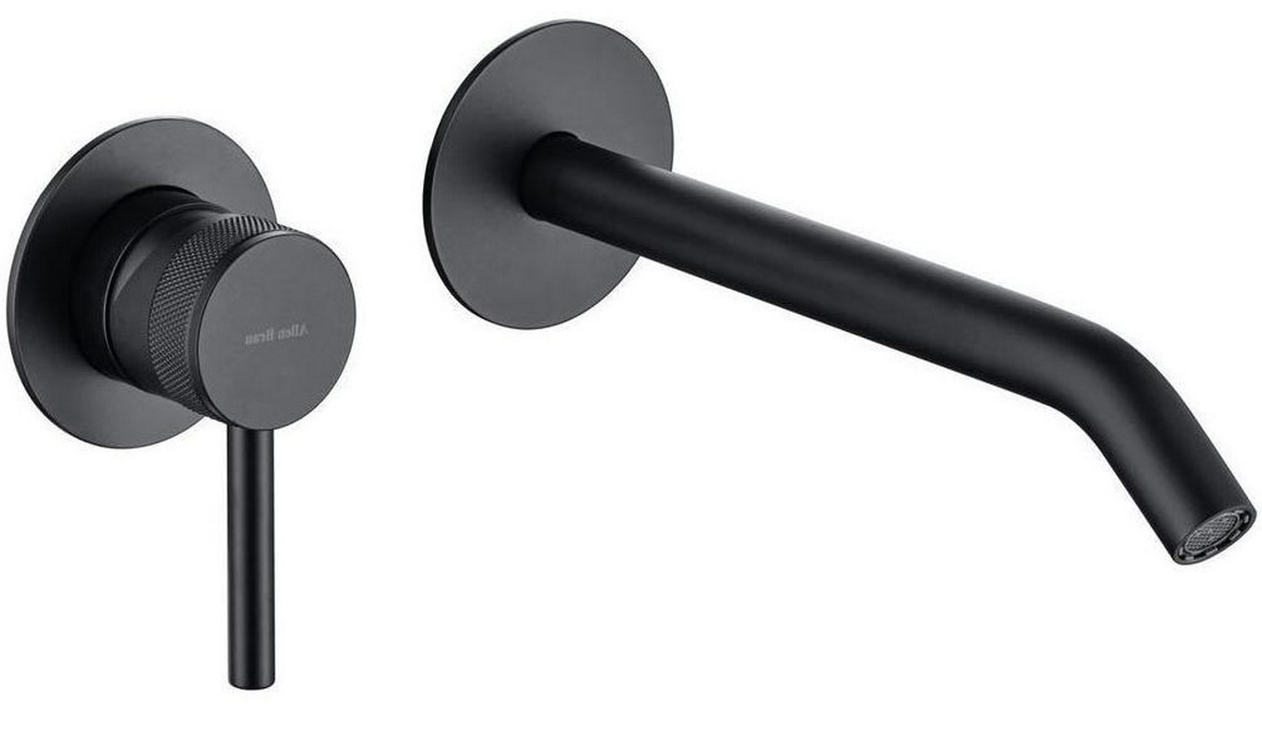 Смеситель для раковины, встраиваемый в стену, излив 195мм, встраив.часть в компл., (цв.черный матовый), Priority