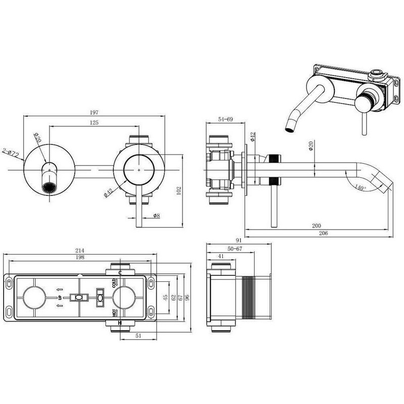 Смеситель для раковины на 2 отверстия, настенный монтаж, внутр. часть в комплекте, цв.черный ESKO ESKO SM28B