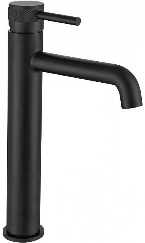 Смеситель для раковины, высокий, без донного клапана, цв.черый матовый