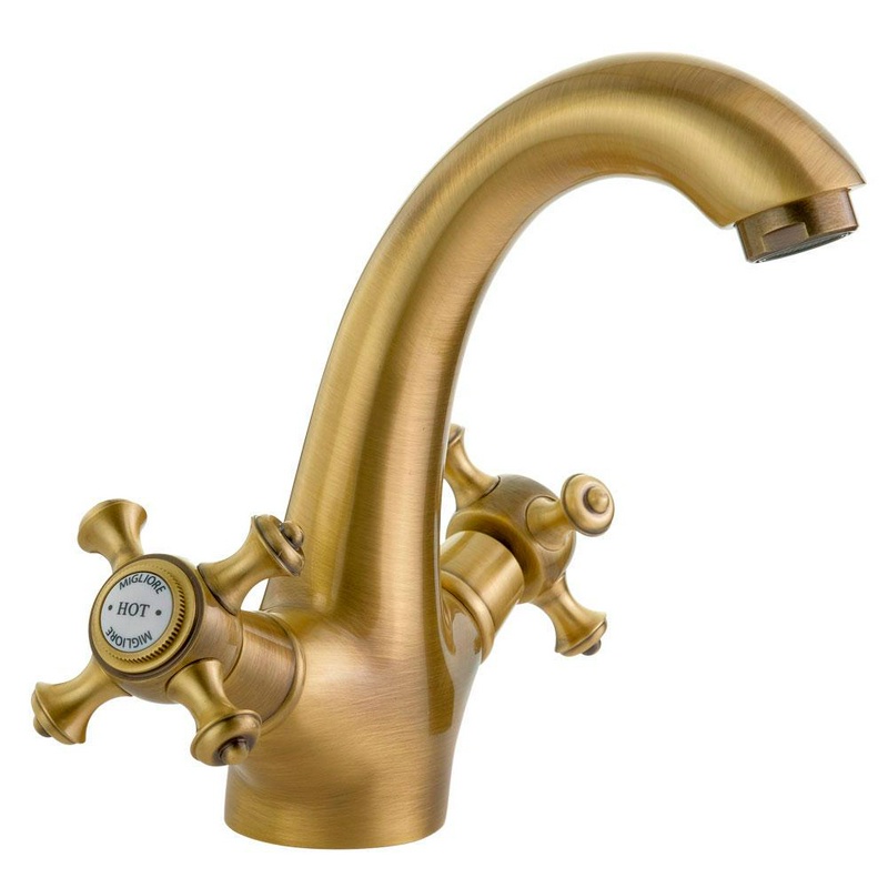 Смеситель для раковины, однорычажный, без донного клапана, бронза