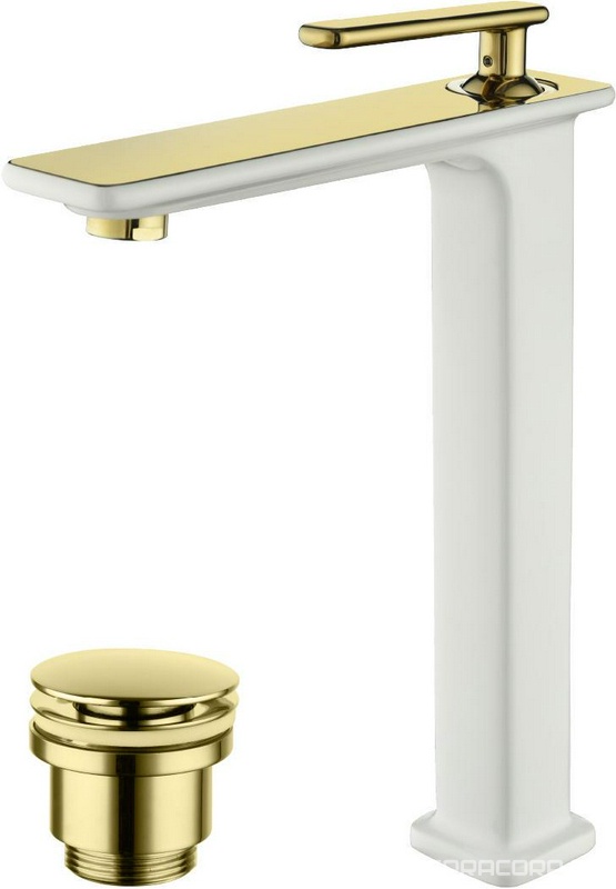 Смеситель для умывальника "MISTA", с донным клапаном, цв. белый/золото ZZ
