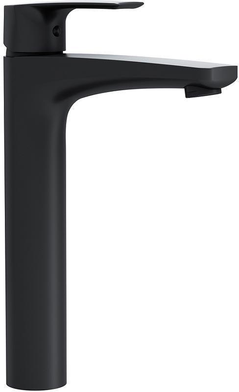 Смеситель для раковины, высокий, без донного клапана, цв.черый матовый