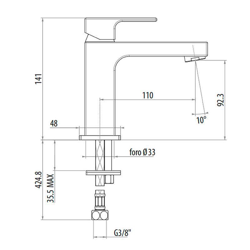 Смеситель для раковины, излив 110мм, без д/к, (цв.черный матовый), Kubik ZZ