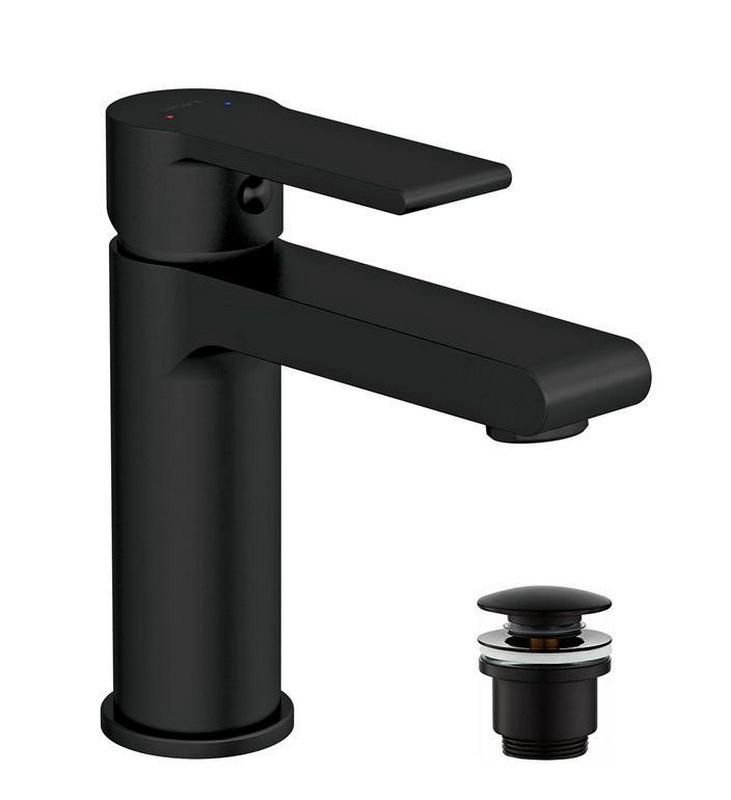 Смеситель для раковины, донный клапан click clack в комплекте, цв.черный матовый
