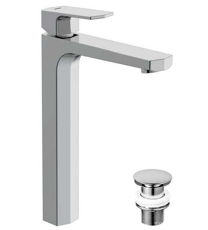 Смеситель для раковины, высокий, донный клапан click clack в комплекте, цв.хром