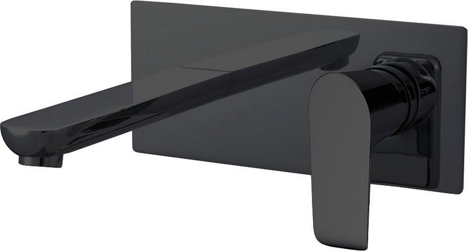 Смеситель для раковины, встраиваемый в стену, излив 195мм, встраив.часть в компл., (цв.черный матовый), Priority