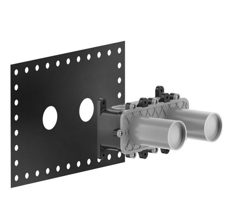 Смеситель для раковины на 2 отверстия, настенный монтаж, внутр. часть в комплекте, цв.черный