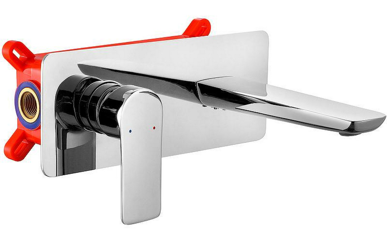 Смеситель для раковины на 2 отверстия, настенный монтаж, внутр. часть в комплекте, хром
