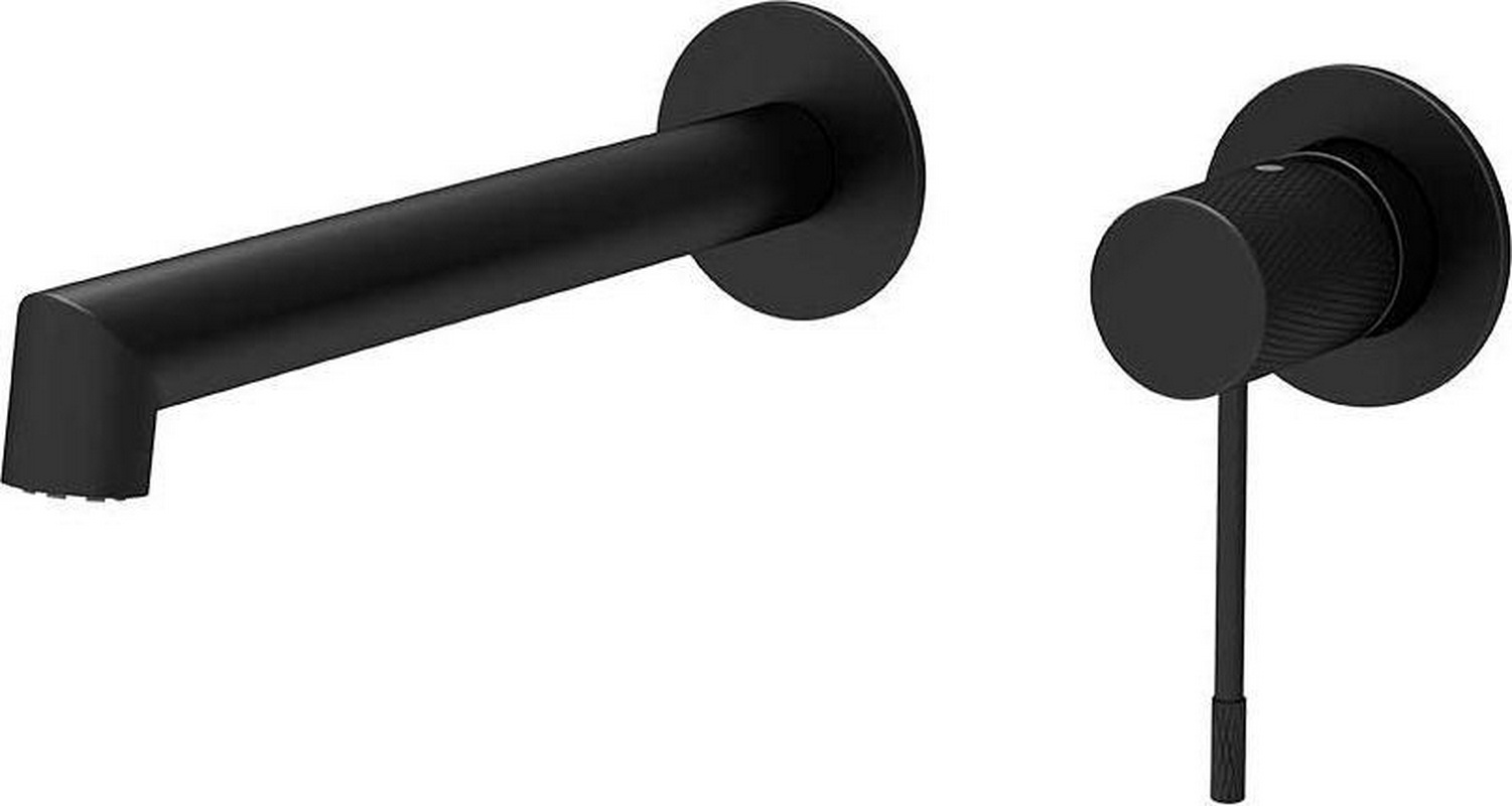 Смеситель для раковины, встраиваемый в стену, излив 195мм, встраив.часть в компл., (цв.черный матовый), Priority