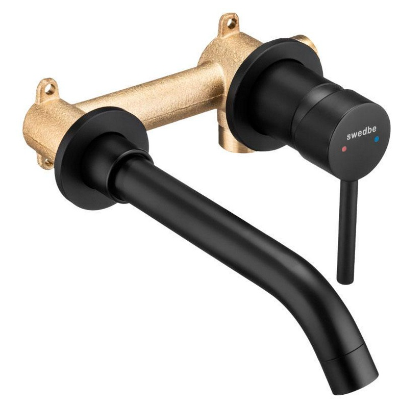 Смеситель для раковины, встраиваемый в стену, излив 195мм, встраив.часть в компл., (цв.черный матовый), Priority