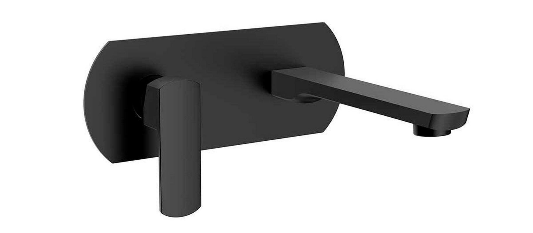 Смеситель для раковины, встраиваемый в стену, излив 188мм, (цв.черный матовый), Stylus ZZ