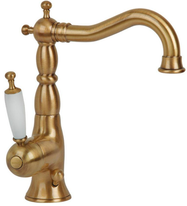 Смеситель для раковины, высокий с поворотным изливом, с д/к, (цв.бронза, ручка цв.белый), Elite ZZ