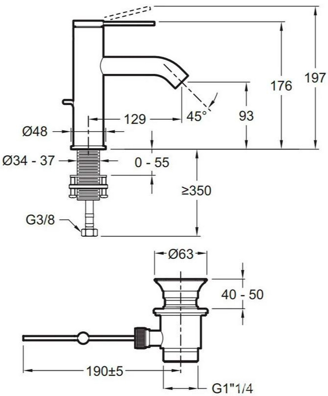 Смеситель для раковины, донный клапан в комплекте, цв. хром