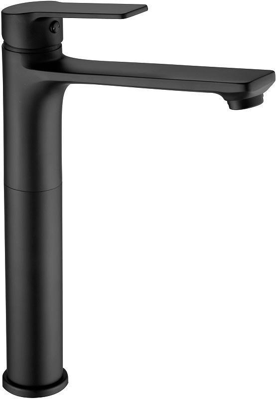 Смеситель для раковины, высокий, без донного клапана, цв.черый матовый