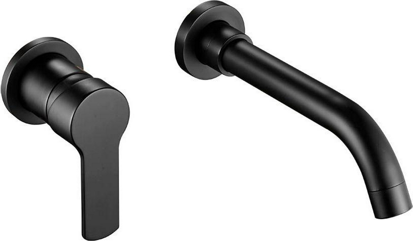 Смеситель для раковины на 2 отверстия, настенный монтаж, внутр. часть в комплекте, цв.черный