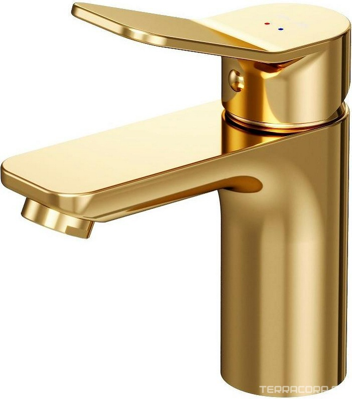 Смеситель для раковины, однорычажный, без донного клапана, золото